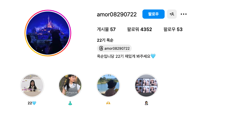 amor08290722 는 옥순의 인스타그램 계정입니다.